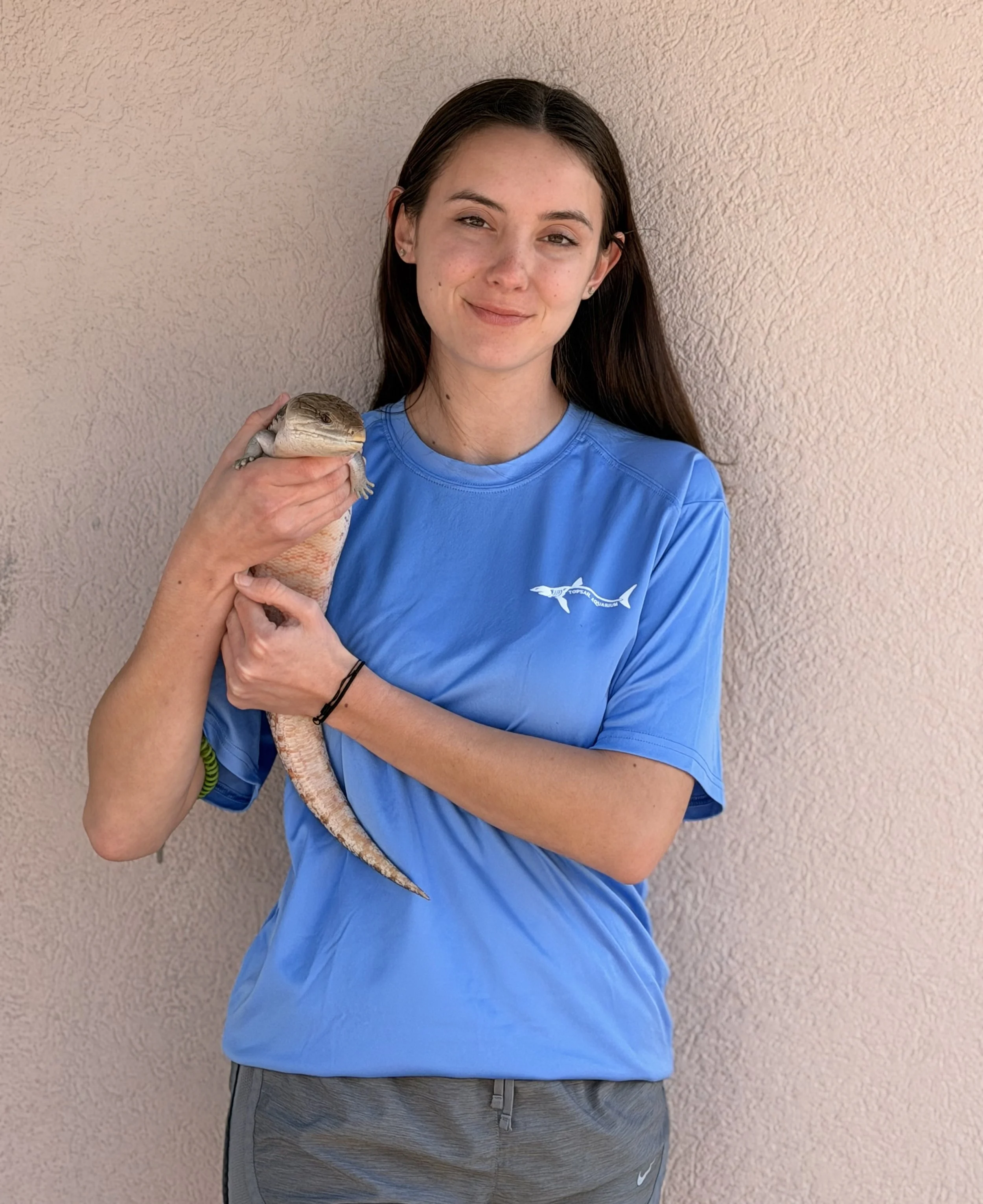 Sometimes we wonder where she gets her wild energy, it never runs out. She is a "whale" of knowledge and can answer any question that you have about the aquarium. If she's not in the lab teaching, dissecting or playing with Petunia you can catch her on the beach doing yoga, playing in the sand with Indy, Vai, and Tola or singing karaoke. (Not really the singing karaoke part, thank goodness.) If she were a sea animal, she would want to be a whale shark, or a seahorse, or an sea turtle, or a black tip reef shark… Or anything, really.
